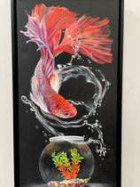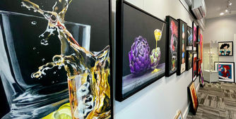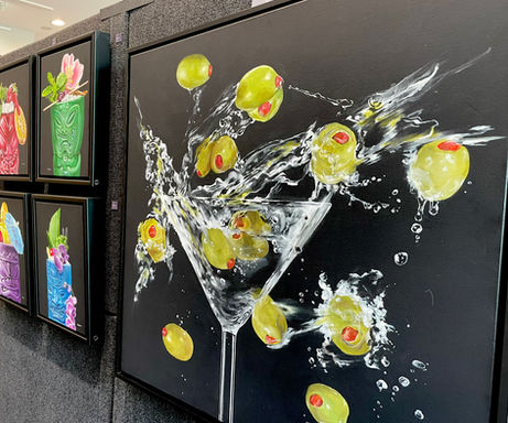 Through the use of positive and negative space, motion and subject matter, I explore the infinite possibilities of gastronomic whimsy in my surreal realistic acrylic paintings.